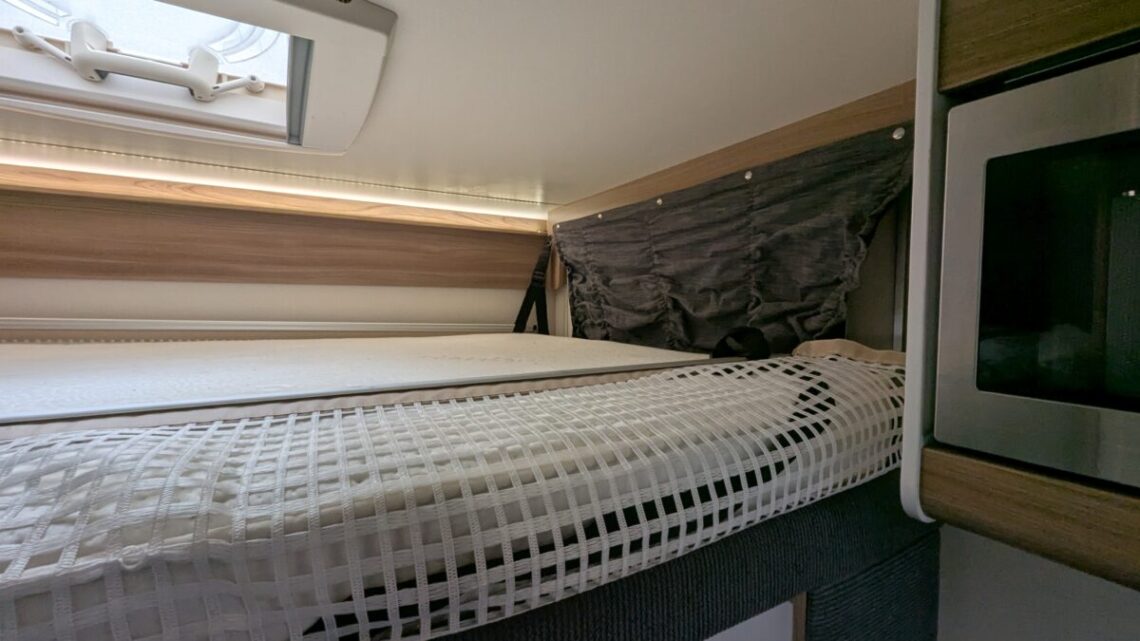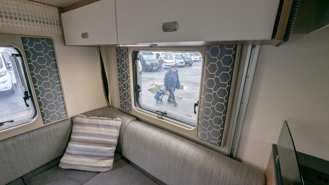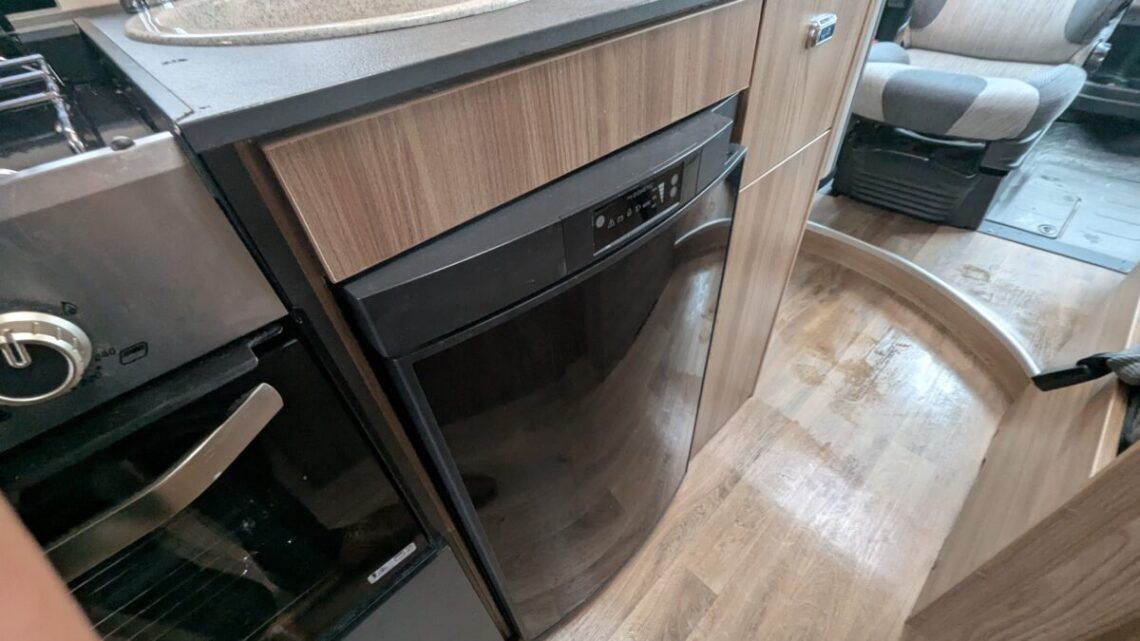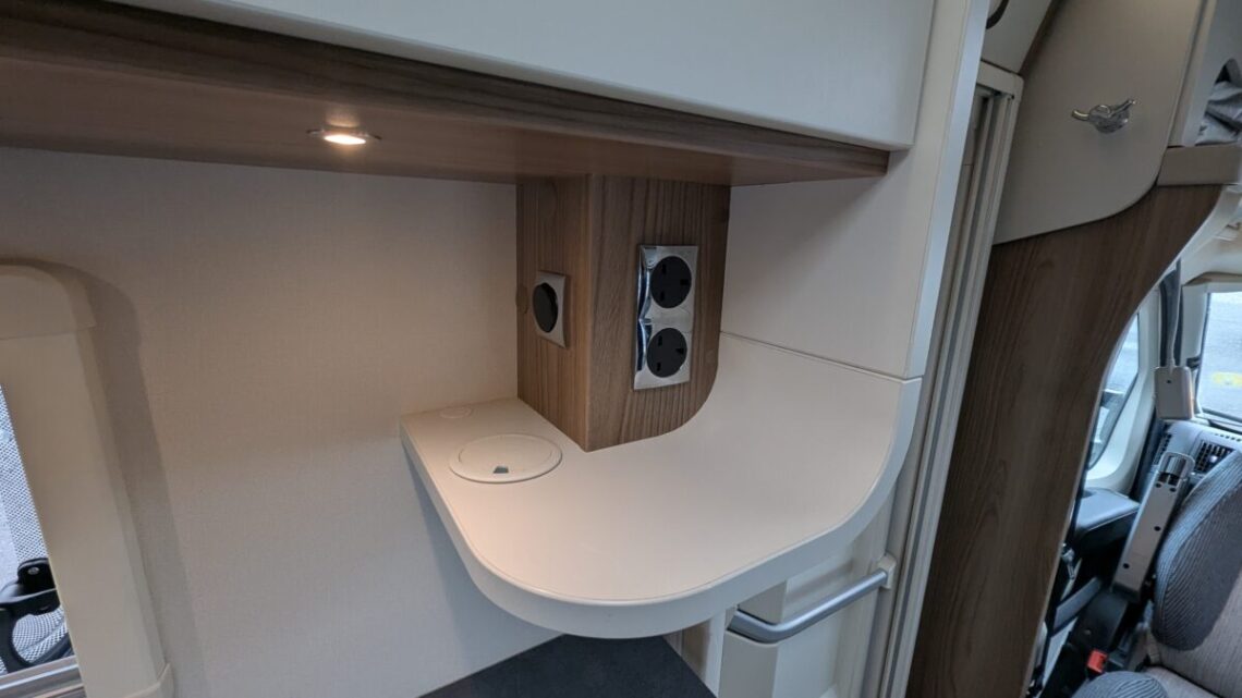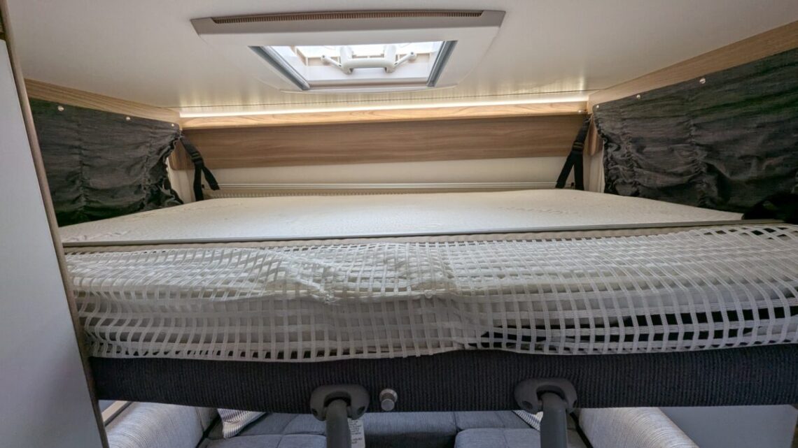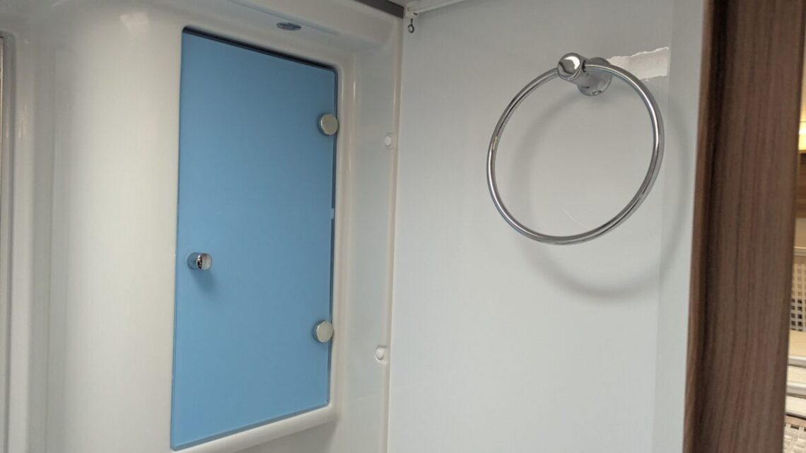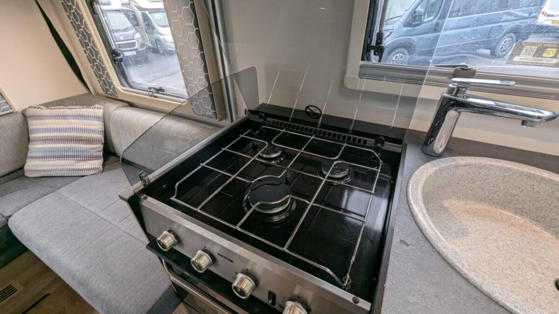 Inside, the C404 is thoughtfully laid out to make the most of its space. The rear U-shaped lounge provides a comfortable area for dining and relaxing, and easily converts into a spacious double bed. Additionally, an overcab drop-down double bed offers extra sleeping space, allowing the motorhome to comfortably sleep up to four people. This flexible layout makes it ideal for couples, small families, or even solo travellers who value space and functionality. The well-equipped kitchen includes a gas hob, oven with grill, microwave, sink, and a generously sized fridge, giving you everything you need to prepare meals on the go. Opposite the kitchen, the stylish washroom features a compact yet practical wet room with shower, toilet, and hand basin — perfect for life on the road.