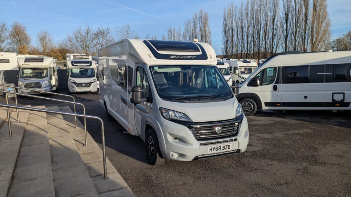 The 2018 Swift Spirit 674, an ideal motorhome for bigger family’s or groups of people wit its 6 berth and 5 seat belts! With one careful owner from new and having only driven 10044 miles this motorhome could be the perfect option for you! Enjoy useful external features such as, BBQ point, Shower point and external awning all to make those summer days even more enjoyable! This also features a 2.3l 130 BHP engine based on the well regarded Fiat Ducato! With a length of 8.22 meters, width of 2.37 meters, and height of 2.88 meters, this motorhome provides generous space for its occupants. The bright living area provides plenty of seating and converts effortlessly into sleeping accommodation, while the drop-down double bed adds extra flexibility without compromising daytime space. The kitchen is well equipped for life on the move, offering ample storage and the facilities needed to prepare meals with ease.