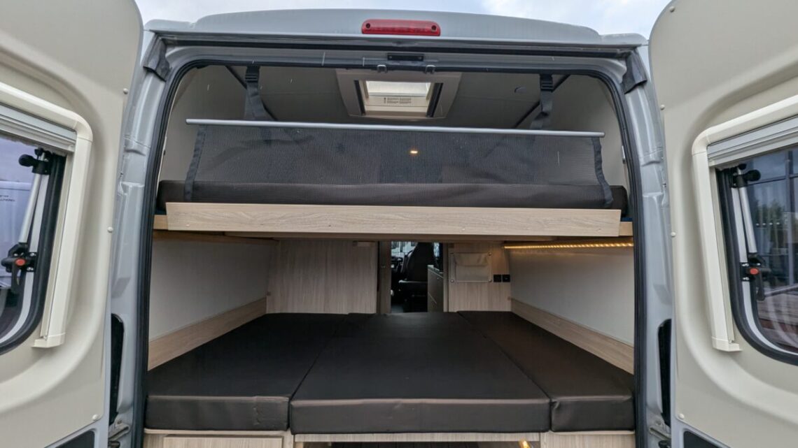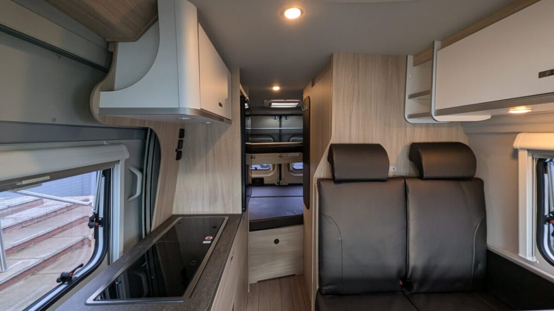 Enjoy the ease and practicality of a van conversion perfect for those long holiday drives or city breaks! Built on the reliable Fiat Ducato 2.3 L diesel chassis, it delivers smooth, efficient performance and easy handling. Inside, the clever layout maximises every inch of its 5.99 m length, offering rear double bunk beds, a convertible front dinette and a fully equipped kitchen with hob, sink, and fridge. The bathroom includes a toilet and shower, while the modern interior features quality finishes, LED lighting, and swivel cab seats to create a welcoming lounge space. This motorhome is fully equipped with useful driving features such as air-conditioning and cruise control!